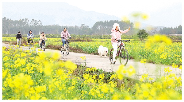 “每年春天油菜花盛开的时候,我们骑行队都会选择来这里骑行。一边欣赏沿途的风景,一边享受运动带来的快乐,感觉非常舒心。”骑行爱好者张翠仙说。