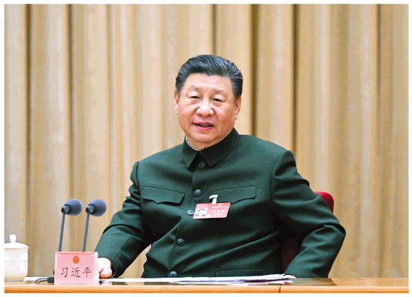 ◤3月7日下午,中共中央总书记、国家主席、中央军委主席习近平出席十四届全国人大二次会议解放军和武警部队代表团全体会议并发表重要讲话。新华社记者李刚 摄