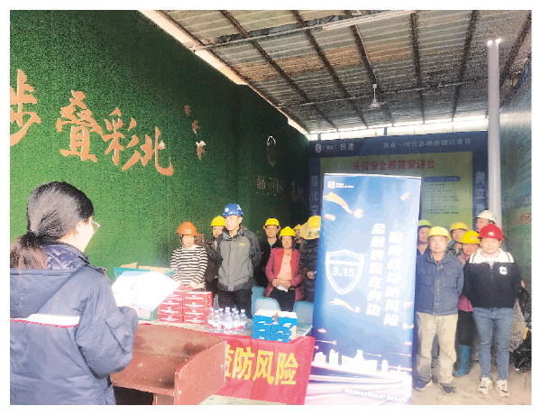 人保财险桂林市分公司到建筑工地开展宣传。(人保财险桂林市分公司供图)