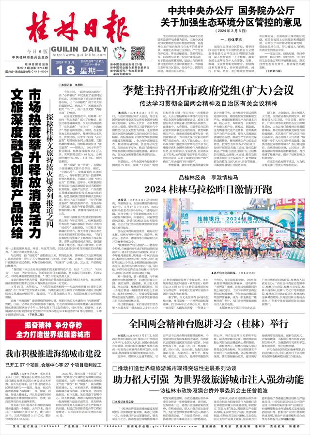 而随着新产品、新业态、新场景被不断推出,将进一步激发文旅市场活力。今年的政府工作报告提出“大力发展文化产业”,积极培育“文娱旅游”等新的消费增长点,与此同时,全国两会期间,广西代表团举办的开放团组活动也传递出桂林文旅发展的新讯号——桂林将发挥首批国家历史文化名城优势,坚持以文塑旅、以旅彰文,加强灵渠、靖江王城等文化遗产保护,实施“景区焕新”“串珠成链”“文化润景”工程,培育发布一系列“桂林经典”,打造遇龙河、龙脊梯田等一批世界级旅游景区和现象级旅游产品,推出诗意栖居休闲康养之旅等八条主题旅游线路。桂林还将依托长征国家文化公园(广西段),打造全国红色旅游重要目的地。值得一提的是,今年4月,文化和旅游部、自治区政府将联合举办“西南剧展”80周年纪念活动,多场经典戏剧将在桂林上演,国际化、年轻态的2024年“桂林艺术节”也将如期举行,桂林将全力打造一场全城互动、全民共享的文化盛宴,“戏剧之城”好戏永不落幕。