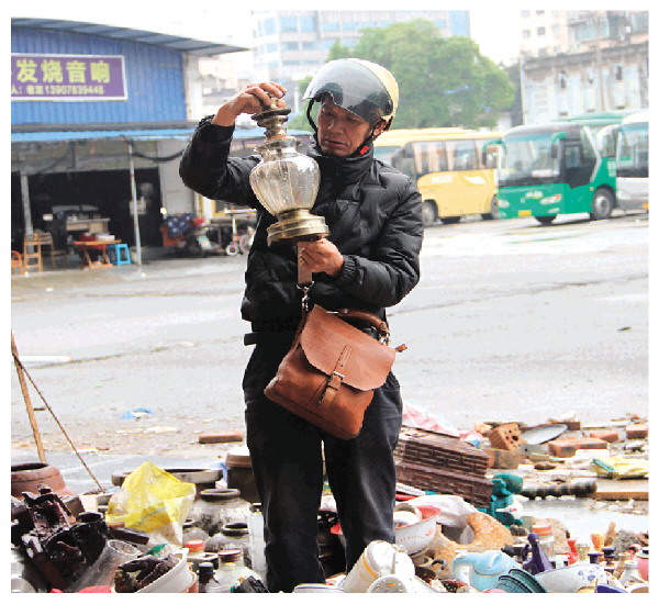 ▲市民在老汽车总站站场内的旧货市场“淘宝”。