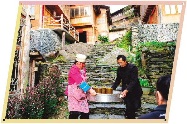 龙胜金竹壮寨经营民宿的壮族同胞准备好了竹筒鸡等特色菜肴,用来招待客人。