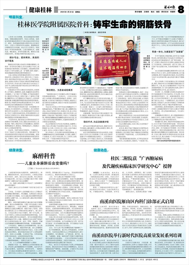 桂林医学院附属医院骨科:铸牢生命的钢筋铁骨 □本报记者胡晓诗 通讯员李锦