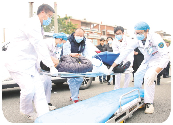 市人民医院急救团队开展应急演练。吴曼莉 摄