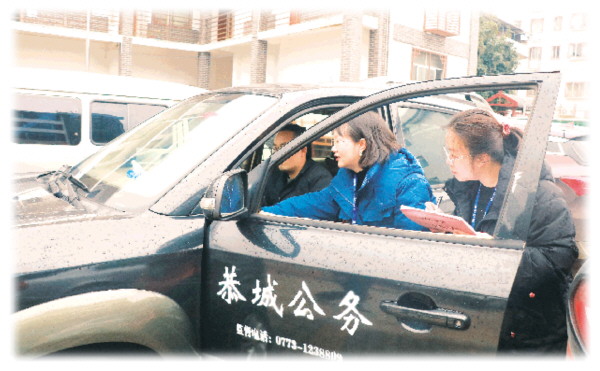 恭城瑶族自治县纪委监委开展公务用车使用管理专项监督,通过实地走访、核查账册、随机抽查、大数据比对等方式,深挖彻查公车私用、私车公养、违规借用等问题。图为该县西岭镇纪委干部对公务车辆进行突击检查。 许永兴 摄
