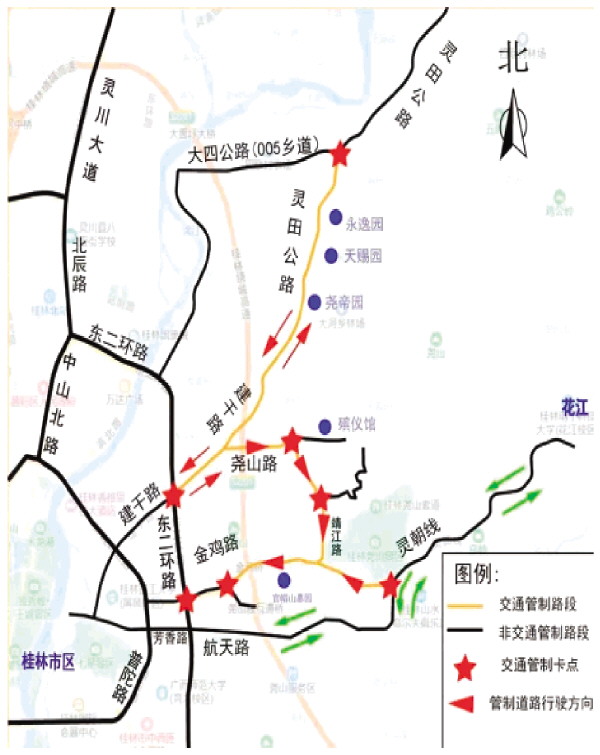 本报讯(记者陈静 通讯员聂梦娴)3月27日,记者从市公安交警部门了解到,为保障广大群众清明假期出行道路交通安全畅通,桂林公安交警部门将于4月4日—6日对尧山片区部分路段实施交通管制。