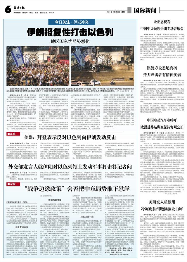 新一轮巴以冲突已持续半年,伊以两国现在又在多方参与下直接冲突,这引发了国际社会对中东局势升级的忧虑。联合国安理会14日将就此次事件举行紧急会议。沙特、埃及等中东国家呼吁冲突各方保持最大限度克制。