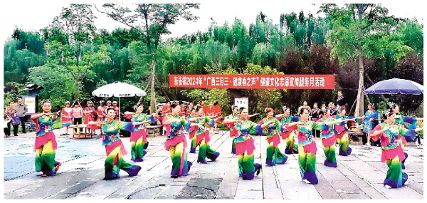 灌阳县业余文艺爱好者为游客表演非遗桂剧舞《桂韵绵长唱灌阳》。陆仕臣 蒋丽萍 摄