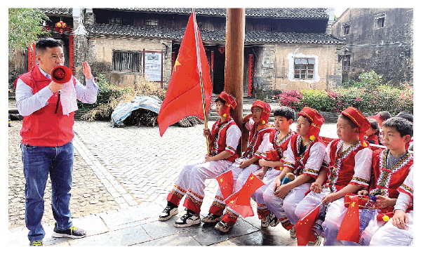 4月9日,灌阳县洞井瑶族乡组织学生到洞井古民居开展廉政文化研学活动,欢庆“三月三”。史春来 摄