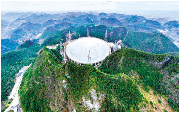 位于贵州平塘县的“中国天眼”,是世界上最大、最灵敏的单口径球面射电望远镜。2017年10月,“中国天眼”宣布发现首批新脉冲星,这是中国人首次利用自己独立研制的射电望远镜发现脉冲星。