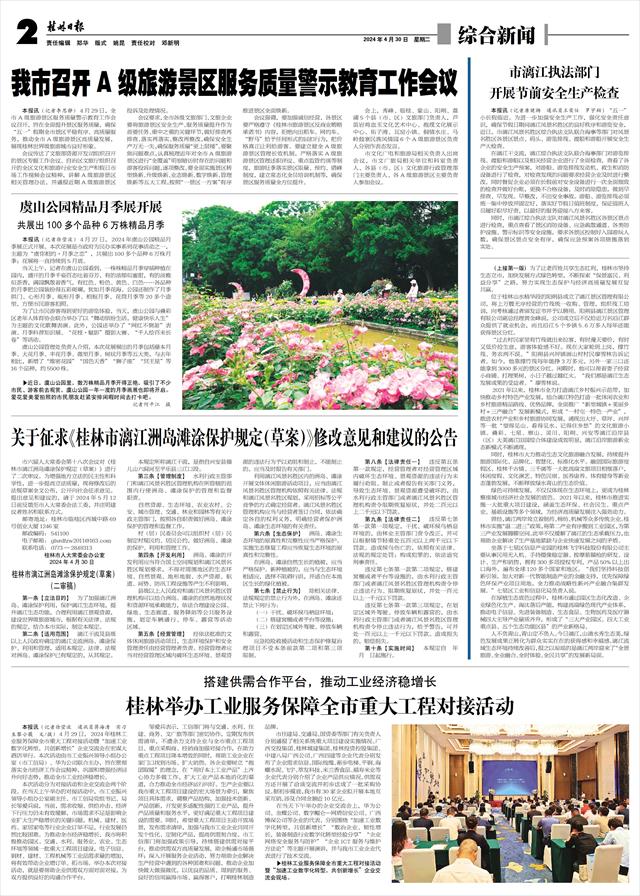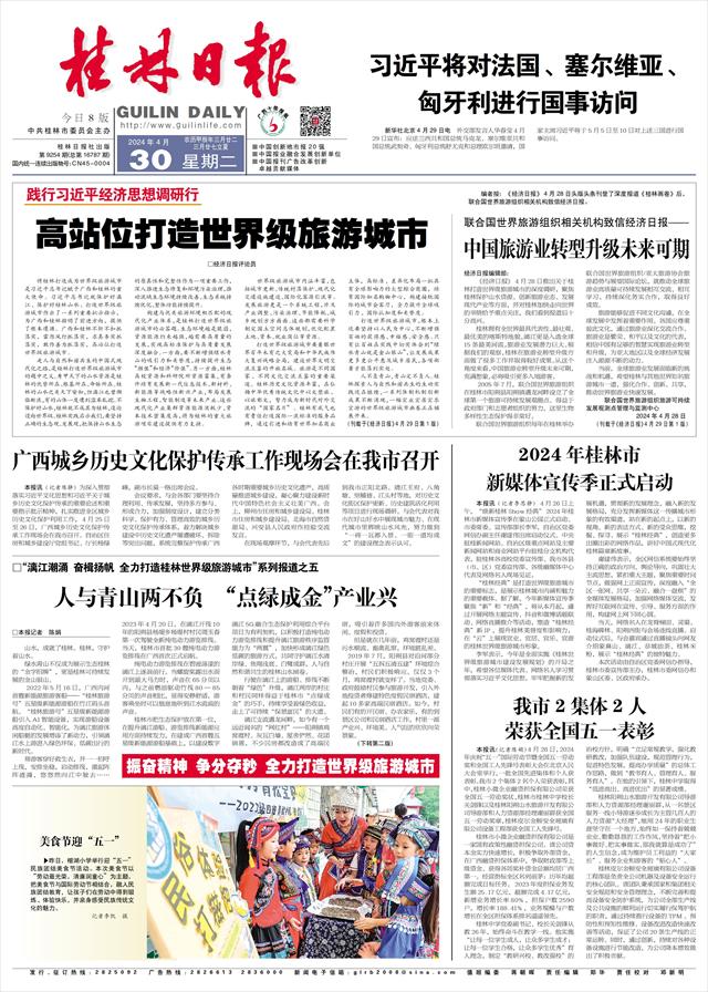 《经济日报》4月28日推出关于桂林打造世界级旅游城市的深度调研,聚焦桂林保护山水资源、创新旅游业态、发展现代产业等方面,并对桂林加快走向世界的举措给予重点关注,我们看到报道后十分高兴。