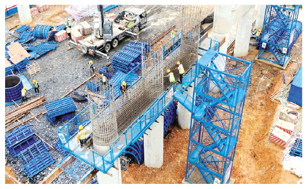 图为5月1日,建设者正在全州南互通主线3号桥施工。 邓琳 李林军 摄