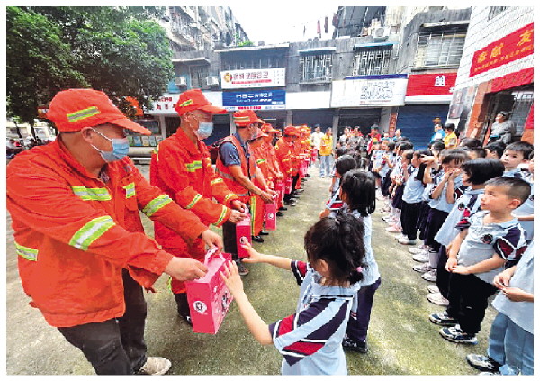 近日,秀峰区篦子园社区人大联络站、“民小志”篦子园志愿服务支队联合西山小学、桂林高新万达广场商圈党支部开展“感谢有你 致敬最美劳动者”慰问活动,为环卫工人送上慰问物资,对他们的辛勤劳动表示感谢。