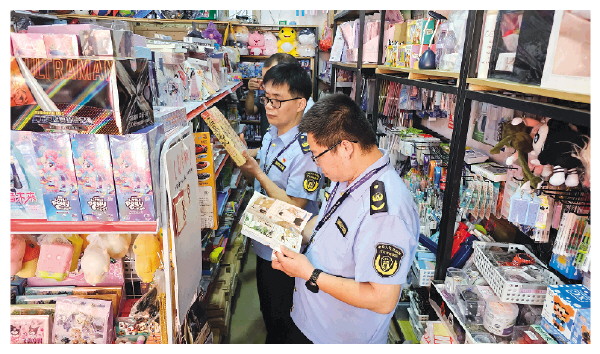▲近日,恭城“扫黄打非”办联合文化执法、新闻出版等部门开展出版物市场专项检查行动,进一步加强版权保护,打击侵权盗版及涉“黄”涉“非”违法行为,为“五一”假期创造一个风清气正的文化环境。图为执法人员对该县西岭镇校园周边的书店进行检查。 林坤增 陈春 摄
