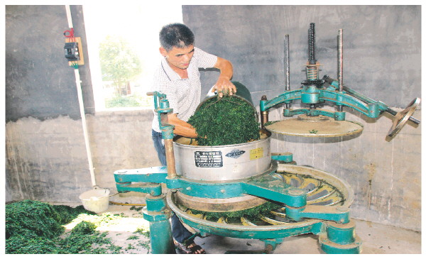 虽说这些年东阳村的绞股蓝事业发展快速,但我并没有满足,而是与村民商量如何更好发展绞股蓝种植。2011年,我与种植户到北京考察并购买了全套制茶设备,开始摸索绞股蓝的深加工技术,提高绞股蓝茶的品质。2016年,我们向国家商标局申请商标并获得批准,注册了广蓝茶商标,让村里的绞股蓝有了“身份”。