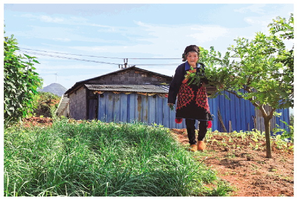 65岁的三女盘春秀说:“我妈妈特别勤劳,这么大年纪还在做事。”她说,母亲辛劳一辈子,已经把劳动当成生活的一部分。母亲99岁时,还能爬到高山上砍竹子,竹子比两个拳头还粗。砍倒竹子,母亲就把细竹枝砍下,并整理成一小捆一小捆,慢慢背回家。100岁的时候,母亲还经常下地扯草,把子女们菜园里的草扯得干干净净。最近,母亲跟着三女儿盘春秀一家生活,还经常去屋后的菜地帮忙扯菜。