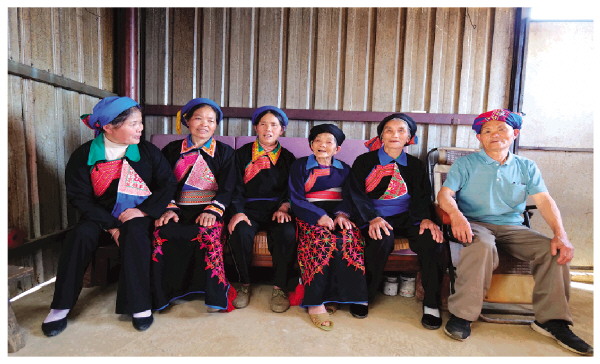 采访过程中,儿女们主动提出要给妈妈穿上当地的瑶族服装,一起拍照留念。女儿们和大媳妇齐上阵,帮老人穿上了既素雅又美丽的瑶族服装。随后,老人和后辈们合影,笑容灿烂。