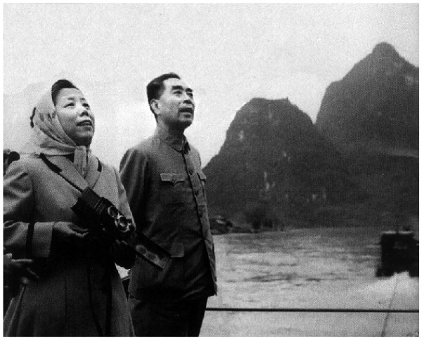 图①:周恩来总理及夫人邓颖超在漓江游船上。 (资料图片)