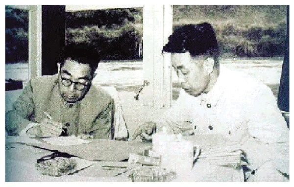 图④:1960年5月15日,周恩来总理在漓江游船上听取桂林地委书记崔廷智汇报桂林建设发展情况。(资料图片)