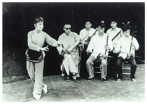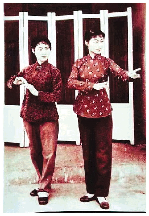 图②:何红玉(右)演出照(广西文场《晴雯补裘》,1962)