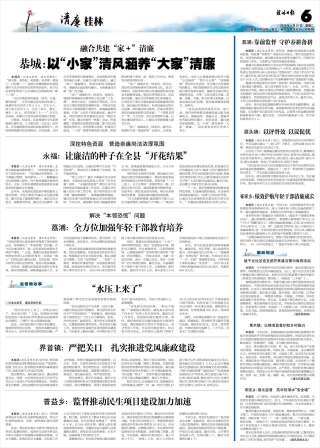 会议强调,要深入贯彻落实习近平总书记关于党的自我革命的重要思想,坚持学方略、谋创新、抓落实,统筹抓好清明政治铸造、清廉政府打造、清正干部锻造、清朗社会营造、新时代廉洁文化建设提升“五大行动”。要坚持数量和质量并举,按照“分类储备一批、融合共建一批、倾力打造一批”思路,扩大清廉单元试点覆盖面,打造“湘江红”“漓水清”等廉洁文化品牌集群,全面推动清廉建设提质增效。要把清廉桂林建设与党纪学习教育、群众身边不正之风和腐败问题集中整治等工作结合起来,营造风清气正的政治生态,为加快打造桂林世界级旅游城市提供坚强保障。
