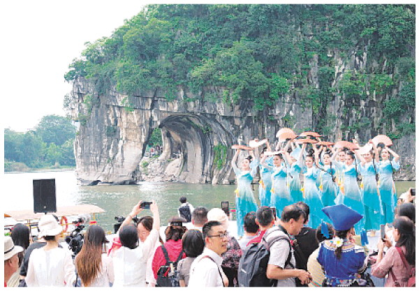 本报讯(记者韦莎妮娜)“漓江烟雨雨霏霏,丝丝缕缕织翠帷。遮着山啊遮着水,朦朦胧胧更妩媚。”扬琴、笛子、琵琶声声,婉转清丽的广西文场让现场将近200名中外观众如痴如醉。“这是本地的戏曲?虽然我听不懂,但我能感受到它的美,太棒了!”5月21日,“漓水清音——2024年桂林市新文艺群体文艺志愿服务活动”在象山景区举行,来自墨西哥的游客里卡多在舞台下驻足观看良久,赞不绝口的他边说边录下了视频。
