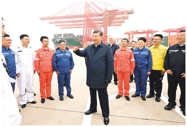▲5月22日至24日,中共中央总书记、国家主席、中央军委主席习近平在山东考察。这是22日下午,习近平在日照港亲切慰问港口科技工作者、运营人员、航运人员。 新华社记者谢环驰 摄