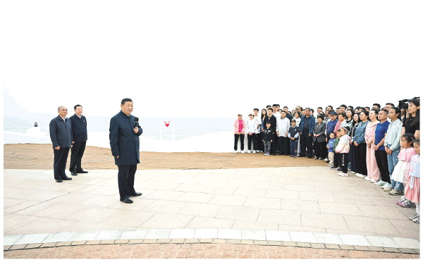 ▲5月22日至24日,中共中央总书记、国家主席、中央军委主席习近平在山东考察。这是22日下午,习近平在日照市阳光海岸绿道同市民和游客亲切交流。 新华社记者谢环驰 摄