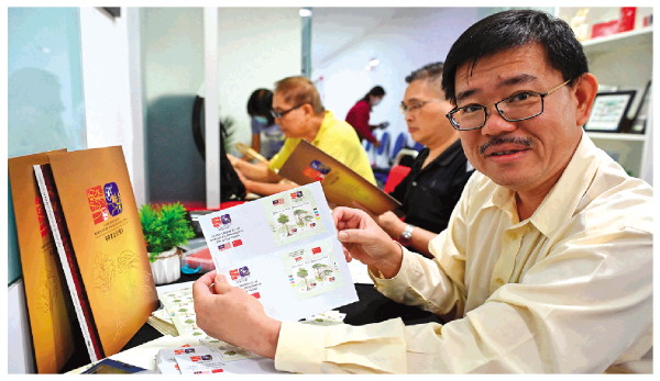中国邮政与马来西亚邮政共同推出的联合纪念邮票31日起在马来西亚发售,以纪念中马建交50周年。该纪念邮票以中国的迎客松和马来西亚的国树印茄树为元素,象征着两国的牢固关系和深厚友情。 新华社发(张纹综 摄)