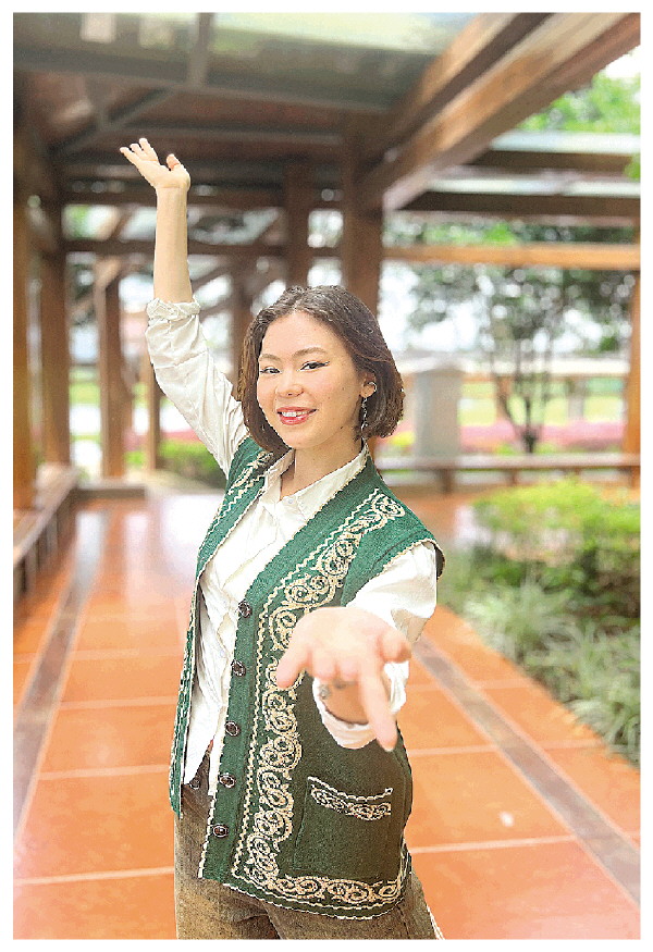 喜欢跳舞的何塔纳展示本民族的舞蹈。