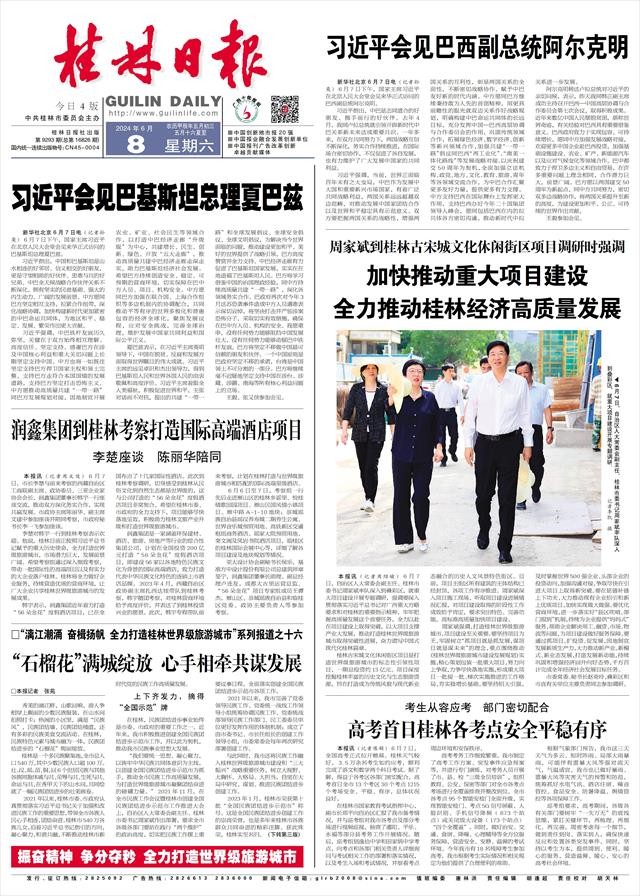 周家斌强调,打造桂林世界级旅游城市,项目建设至关重要。要坚持项目为王,牢固树立“抓项目就是抓发展,谋项目就是谋未来”的理念,重点围绕推动《桂林世界级旅游城市建设发展规划》实施,精心策划包装一批重大项目,努力向上争取,力争尽快落地实施,形成重大项目一批接一批、梯次实施推进的工作格局,夯实稳增长基础。要坚持招大引强,及时掌握世界500强企业、头部企业的投资动向,加强沟通对接,争取尽快在引进大项目上取得新突破。要在延链补链上下功夫,大力推动现有企业招引和新上优质项目,加快实现做大做强。要优化营商环境,进一步落实好“县区吹哨、部门报到”机制,持续为企业提供“妈妈式”服务,帮助企业解决用工、融资、市场、物流等问题,为项目建设做好服务保障。要通过抓项目、扩投资、促发展,因地制宜发展新质生产力,大力推动新产业、新模式、新业态发展,打造发展新动能,持续巩固和增强经济回升向好态势,千方百计完成全年经济社会发展目标任务。