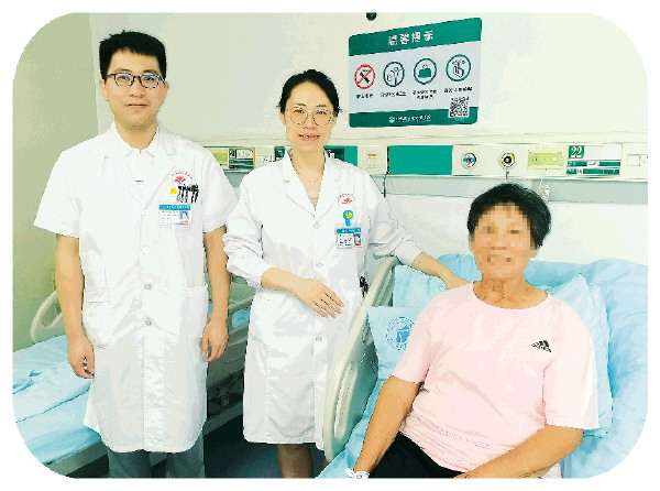 曾女士(右一)认为,桂医附院的医生医术高、护士服务好。图为曾女士在临出院前,与乳腺、甲状腺外科医生合影。记者徐莹波 摄