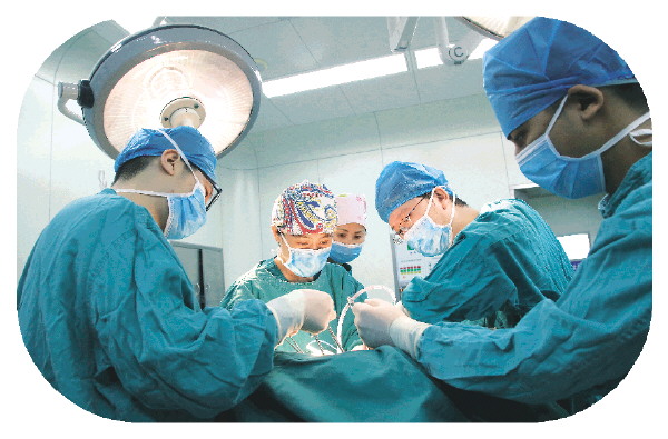 孙达欣(左二)带领团队为患者实施手术。李锦 摄
