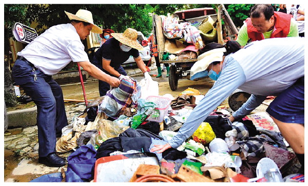 洪水退去后,社会各界人士纷纷投身到清淤清运工作中。连日来,秀峰区人大常委会组织人大机关、解东、百梓、阳江社区联络站人大代表到九岗岭社区清理灾后环境卫生,助力社区早日恢复生产生活秩序。 记者韦莎妮娜 摄