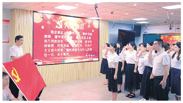 党员教师重温入党誓词(桂林市榕湖小学供图)