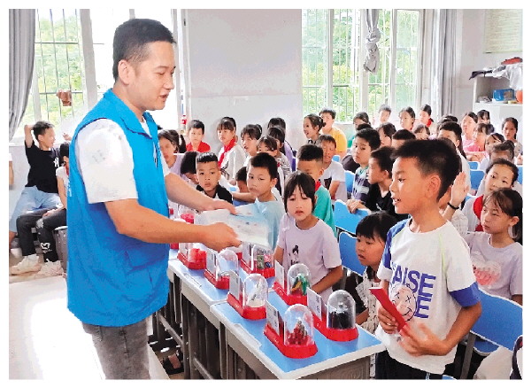 ▲禁毒社工和学生进行禁毒问答互动