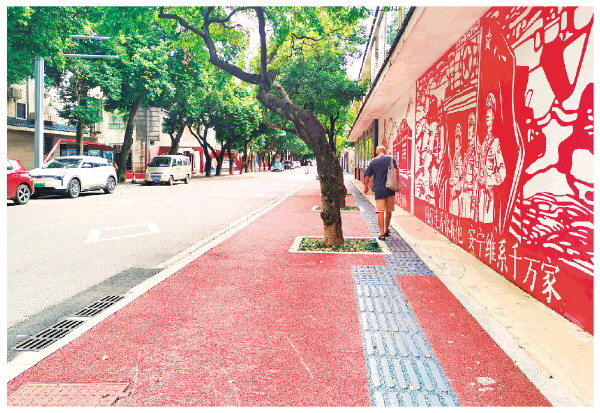 7月6日下午,记者在叠彩区龙珠路看到,道路两侧人行道上新铺装了透水混凝土,并涂装成红色。“龙珠路连接叠彩山景区和伏波山景区,两侧人行道路面原来铺装的是青石板,下雨时路面容易积水,影响了市民、游客安全出行。为此,我们在实施五大景区连接线项目(一阶段)时,对该道路人行道进行了海绵化改造。”桂林城乡建设控股集团有限公司有关负责人说。
