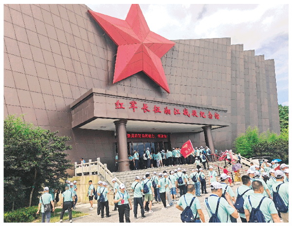 7月14日,湖北省宜昌市800多人组成的成人研学团队来到全州红军长征湘江战役纪念馆追溯红色历史,缅怀革命先烈,聆听红色故事。邓琳 摄