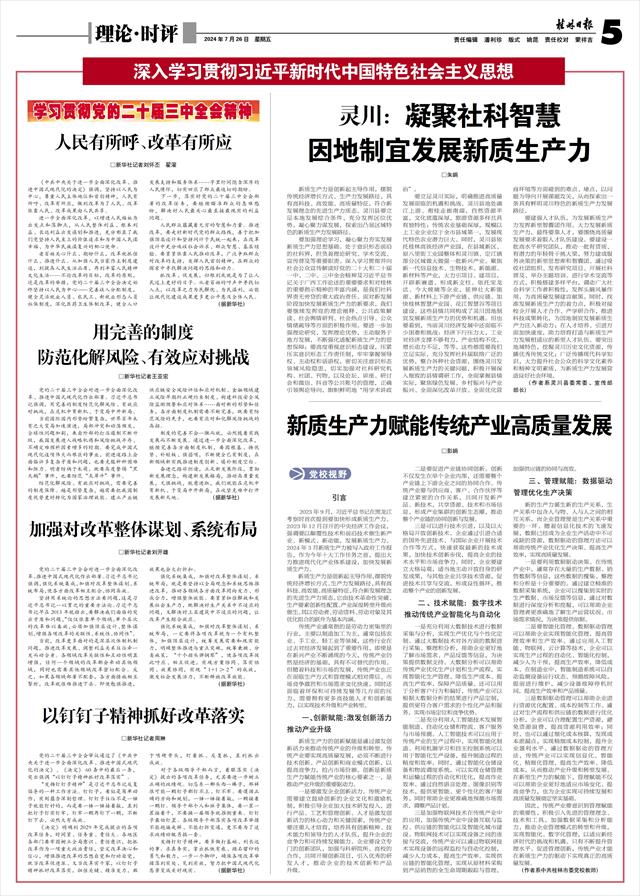 高质量发展是全面建设社会主义现代化国家的首要任务,是新时代的硬道理。党的二十届三中全会通过的《中共中央关于进一步全面深化改革、推进中国式现代化的决定》,对健全推动经济高质量发展体制机制、促进新质生产力发展作出重要部署,强调“必须以新发展理念引领改革,立足新发展阶段,深化供给侧结构性改革,完善推动高质量发展激励约束机制,塑造发展新动能新优势”。