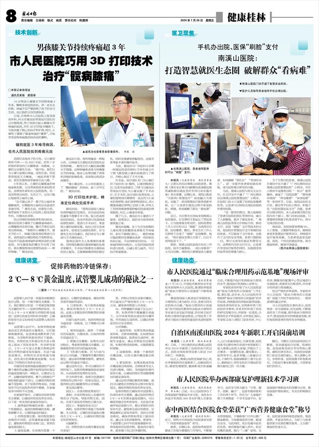 日前,在桂林市人民医院上肢及创面外科,科主任扈克治带领医疗团队经过仔细检查,终于找到引起小廖膝关节疼痛的病因,并在3D打印技术辅助下,为他实施了精心的治疗和护理。现在,小廖终于摆脱了膝盖疼痛的“噩梦”,开始享受没有疼痛能自由活动的暑假。