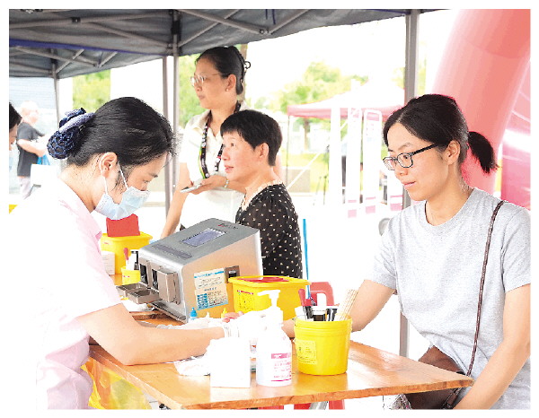 献血活动现场,一个个帐篷下,前来献血的党员们络绎不绝。志愿者与医务人员微笑迎接,细心指导,引导党员干部们有序排队进行填表登记、血液初筛、化验血型、采血献血等各项流程。