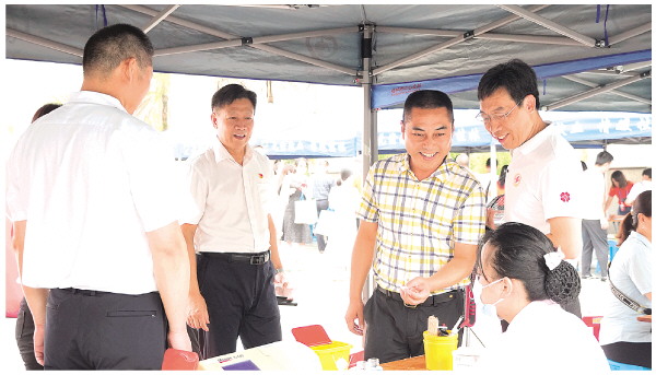 党员干部们纷纷来到活动现场无偿献血。 记者何月 摄