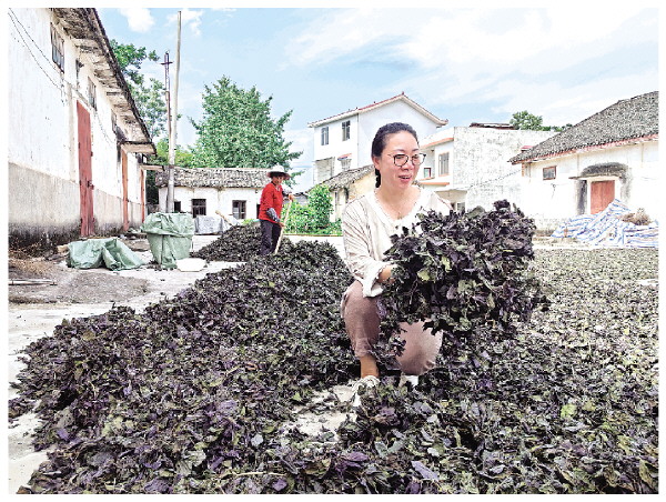 王承凤在晾晒紫苏。 记者秦丽云 摄