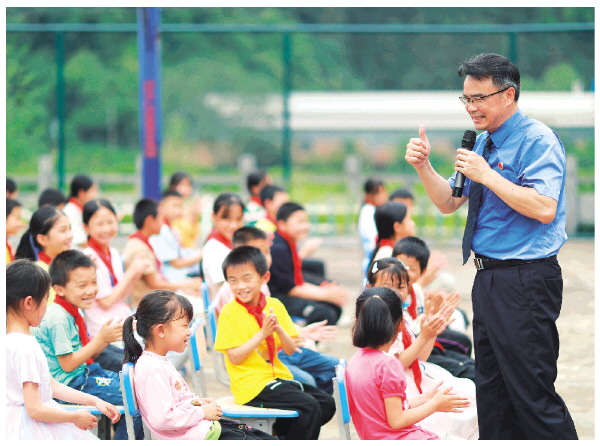 2022年6月7日,赖家明在永福县龙江乡双江小学给学生上法治课。记者刘教清 李忠波 摄