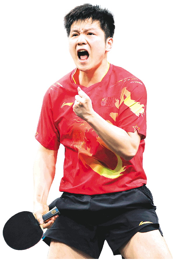 8月4日,樊振东在比赛中庆祝。