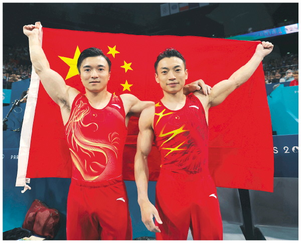 当日,在巴黎奥运会体操男子吊环决赛中,中国选手刘洋成功卫冕获得冠军,邹敬园获得亚军,希腊选手佩德罗尼亚斯获得季军。新华社记者曹灿 摄