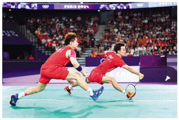 8月4日,中国组合梁伟铿/王昶(右)在比赛中。