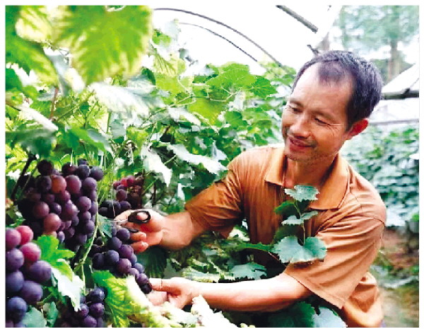 葡萄丰收,全州县枧塘镇一种植户笑容灿烂。 邓琳 摄