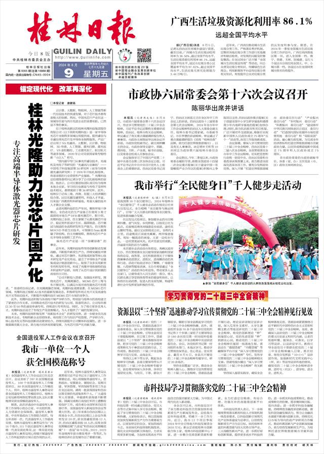 市政协六届常委会第十六次会议召开 陈丽华出席并讲话   本报讯(记者周文俊)8月8日,市政协六届常委会第十六次会议召开,传达学习贯彻党的二十届三中全会精神,习近平总书记近期有关重要讲话精神,自治区、桂林市有关会议精神,审议通过了有关重点课题调研报告和人事事项。市政协主席陈丽华出席会议并讲话,市政协党组副书记、副主席钟麟主持会议,市政协领导文建中、郑毅、蒋昌桂、王昕、卢全喜,秘书长徐熔,以及常委会组成人员参加会议。