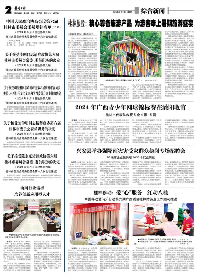 目前,我市正值暑期旅游旺季。近期以来,桂林旅游股份有限公司(以下简称“桂林旅股”)通过强化安全保障,丰富旅游产品,以饱满的热情和专业的服务,全力以赴做好游客接待工作,让四方宾朋在桂林得到安全、舒适、高质量的旅游体验。
